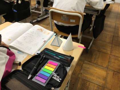 角錐や円錐について学んでいます。この日は表面積や側面積を求めました。