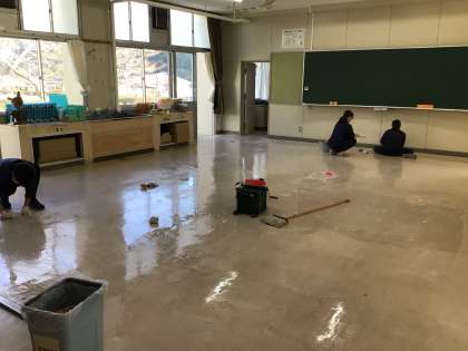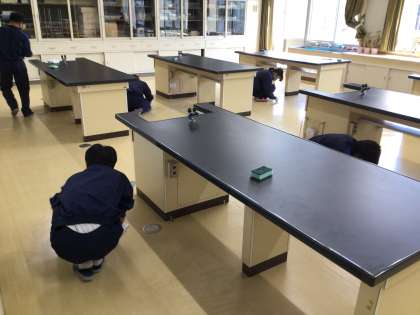 年度末の大掃除を行いました。机・椅子やロッカー類を廊下に出し、清掃した後、ワックスがけを行いました。