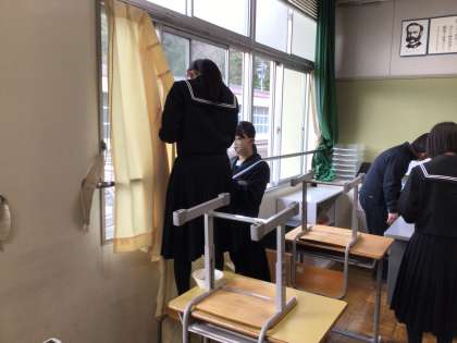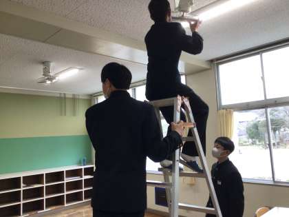 昨日教室のワックスがけを行いました。今日は新年度から使う教室へ机を移動しました。