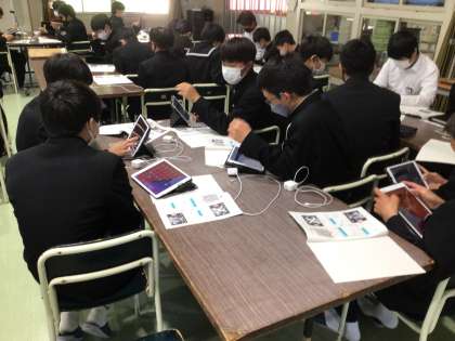 全校生徒が集まり、タブレットの正しい使い方を確認しました。