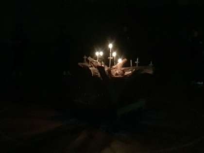 キャンドルサービス第2部は、キャンドルの炎のもと、それぞれの中学校生活の目標を発表しました。
