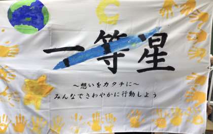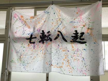 昨日の体育祭のために作った学級旗を紹介します。