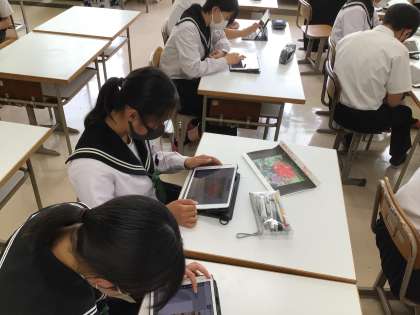 今年も和紙で作品を作ります。どんな絵にするか、タブレットを使って考案中です。