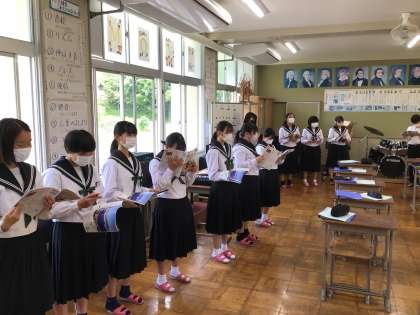 2年生は音楽の授業で「サンタルチア」を歌っています。