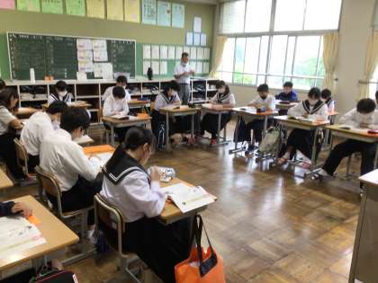 1年生は「サッカー漫画を描きたい」を読み、努力するために大切なことを考えました。3年生は「私も高校生」の内容をもとに、自主自立について話し合いました。