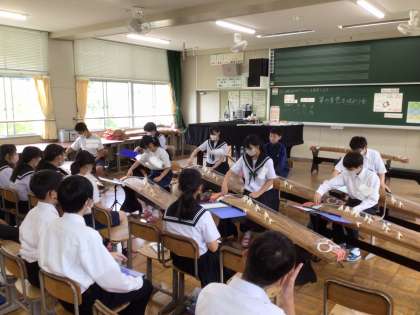 昨日に引き続き、箏の音色を味わう会を行いました。今日は班ごとに「さくら」を発表しました。