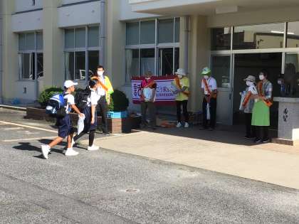 社会を明るくする運動がありました。早朝よりたくさんの方から、登校する生徒に声をかけていただきました。