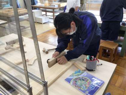 1年生技術科では、木でポケットティッシュケースを作っています。かんながけをしています。