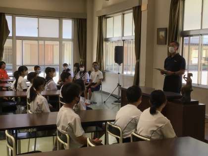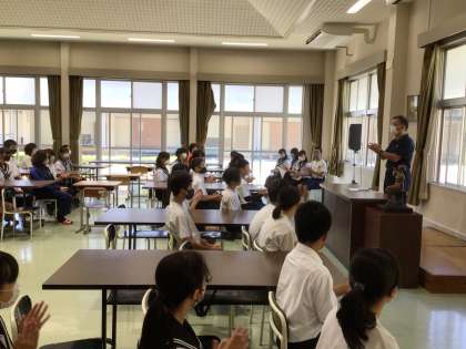 全校集会を行いました。表彰披露や学校祭のアトラクション説明などを行いました。