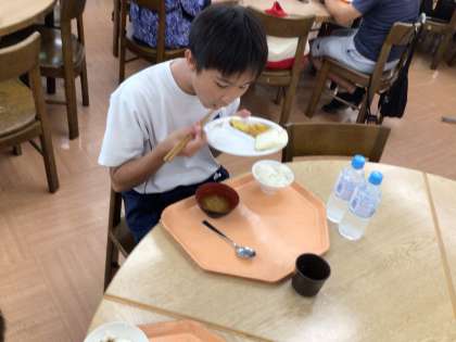 朝食の様子です。自然の家での最後の食事となりました。