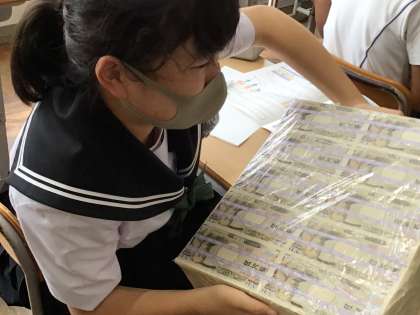3年生社会科の授業で租税教室を行いました。税理士さんに来ていただき、税の種類や仕組みを教えていただきました。