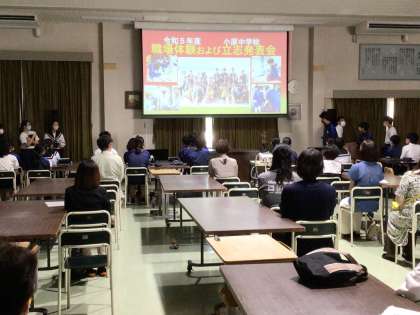 1年生はタグラグビー、2年生は職場体験学習発表会および立志発表会、3年生は道徳の授業を見ていただきました。たくさんの保護者、事業所の皆様にお越しいただきました。ありがとうございました。