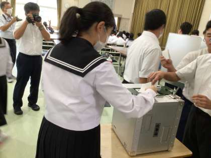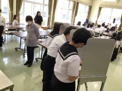 後期生徒会役員がありました。立会演説会の後、投票を行いました。