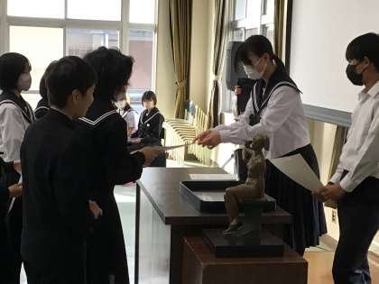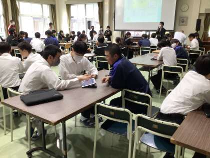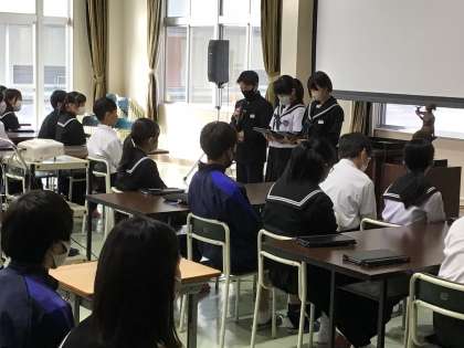 全校集会を行いました。表彰披露、周回鍛錬の説明をした後、生徒会によるレクリエーションがありました。今回はタブレットを使って簡単なゲームをしました。
