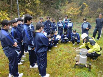 1年生が水源の森探検隊に参加しました。森を管理することで水資源を確保していることなどを学習しました。