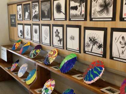 おば中ギャラリーに学校祭で展示した作品を飾りました。