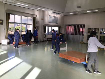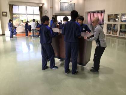 ピカピカプロジェクトと題して、1年生が顕彰館の床磨きを行いました。アンケートをとり、自分たちでできることは何かを考え、自分たちで計画しました。