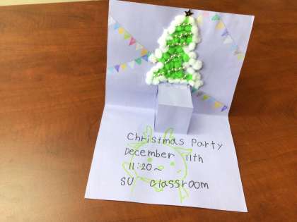 SU学級は英語を使ったクリスマス会を行いました。英語のクリスマスソングを歌ったあと、英語を使ったビンゴや宝探しなどのゲームで楽しみました。招待状も英語で作りました。