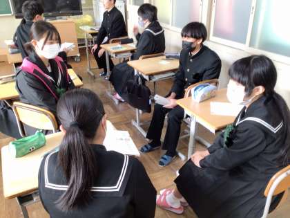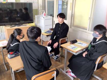 3年生は面接の練習をしています。今日はグループで確認し合いました。