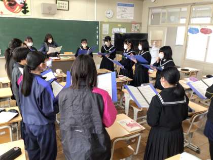 卒業式で歌う歌の練習を、昼放課を使って行っています
