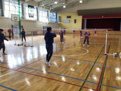バドミントンで体を動かしています!