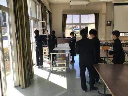 卒業を祝う会に向けて準備が進んでいます。今日は全体練習をしました。
