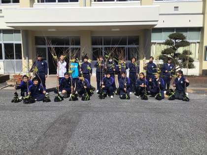 3年生は3年間育てた四季桜の苗木を持ち帰ります。