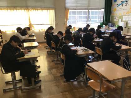 本年度最後の基礎学力テストを行いました。1年生は理科、2年生は国語でした。
