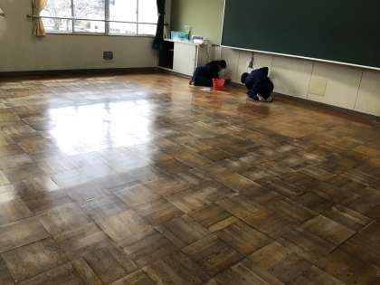 教室と特別教室のワックスがけを行いました。