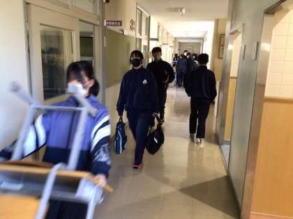来年度使用する教室に机を移動させました。