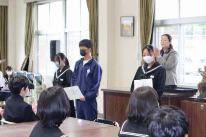 全校集会で前期の室長と委員長の任命を行いました。
