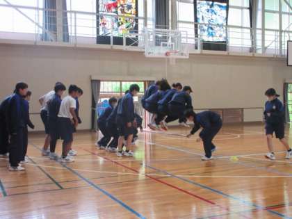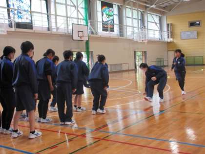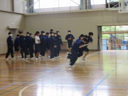 体育祭の種目練習です。チーム編成や走順などをみんなで決め、「おばっこハリケーン」の練習をしていました。