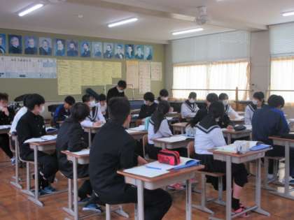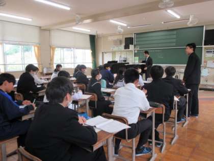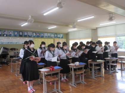 「夢の世界を」の歌詞と曲について感じたことを発表しています。歌ってみてリズムの変化を感じ取っていました。