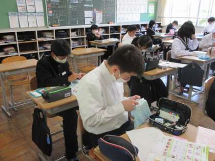 裁縫で学習した、波縫い、本返し縫い、ボタン付けなど、うまくなりたい技の練習をしていました。
