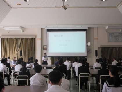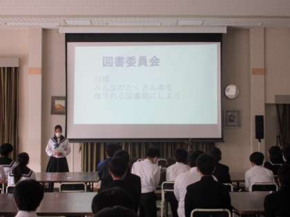 前期の活動について、生徒会長と各委員会の委員長が説明しました。