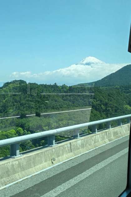 天候に恵まれ、修学旅行がスタートしました。車窓からの富士山もきれいです。