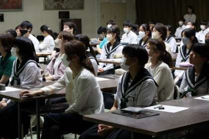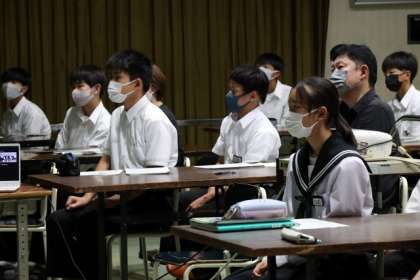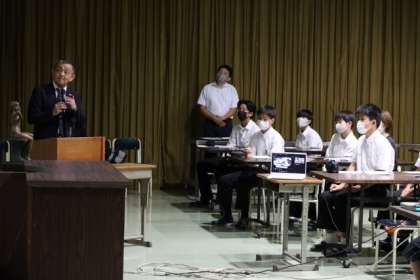 市内8校の高校から先生をお招きし、高校説明会を実施しました。真剣な表情で、各校の先生のお話を聞いていました。