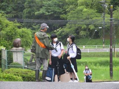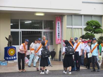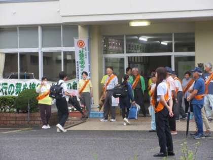 今日の生徒登校時間に合わせて、保護司の皆さんをはじめ、民生児童委員、区長会、地域会議など小原地区の皆さんが本校に集まり、社会を明るくする運動をされました。