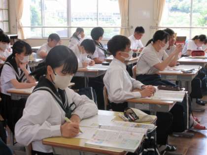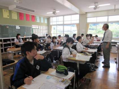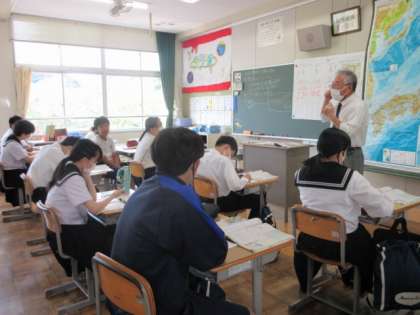 人口ピラミッドを比較して、日本が少子高齢化の社会であることを確認しています。どんなところに人口が集まりやすいのか意見を発表していました。