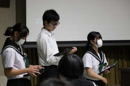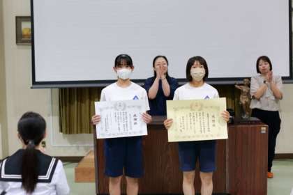 生徒会による夏休み前全校集会が行われました。表彰伝達、先生の話、全校レクなど、全校で夏休み前のひとときを楽しみました。