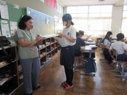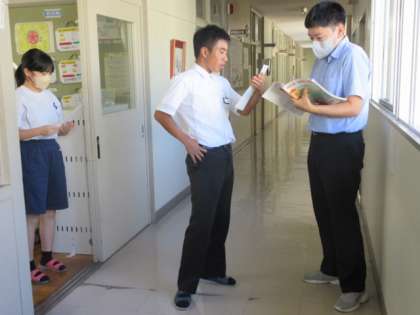 「have to」を使った文の学習です。先生を相手に会話の練習です。