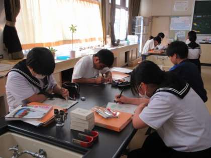 茎や葉のつくりについて学習しています。図を見ながら名称や役割を確認していました。