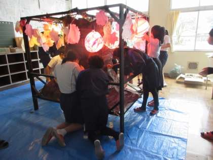 軽トラあんどんも完成間近。最後の仕上げに取り組んでいました。