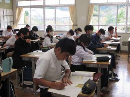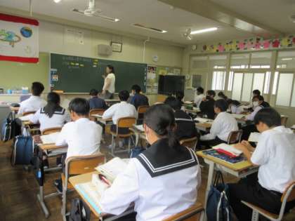 食物アレルギーをめぐる食品についての学習です。商品の原材料名を確認することの大切さについて話し合っています。