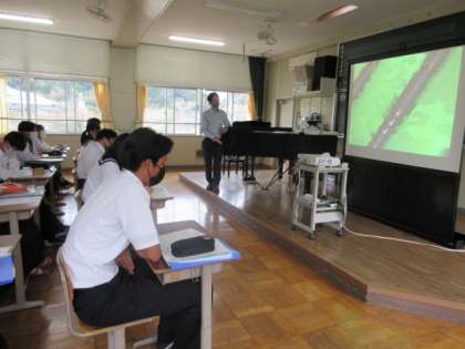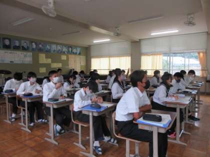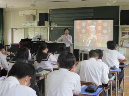 雅楽で使われる楽器について学習しています。どのような音色か、何を表すか、楽器にはどんな特徴があるのかなど、興味深そうに聴いていました。