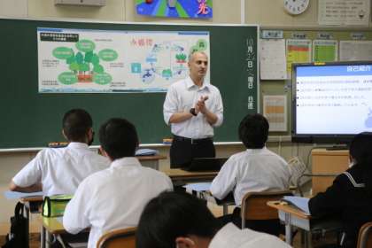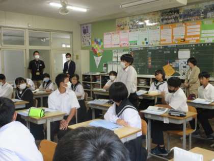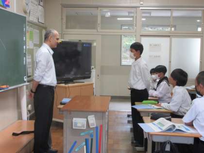 豊田市上下水道局の方と東京大学生態水文学研究所の先生をお迎えして、水源の森探検隊の事前学習を行いました。少し難しい話もありましたが、しっかりと話を聞くことができました。