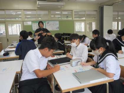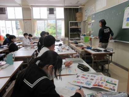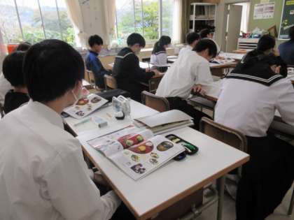小原の四季について、イメージを出し合っています。花や山の色、田んぼ、和菓子などいろいろなもので季節を感じているのですね。