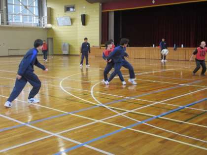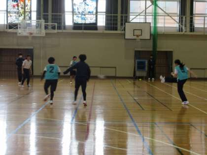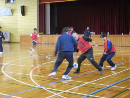 サッカーの練習試合です。担任の先生も交じって熱戦が繰り広げられていました。