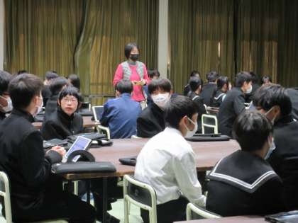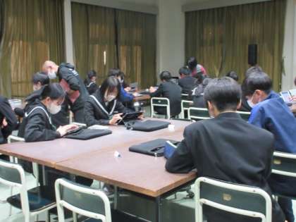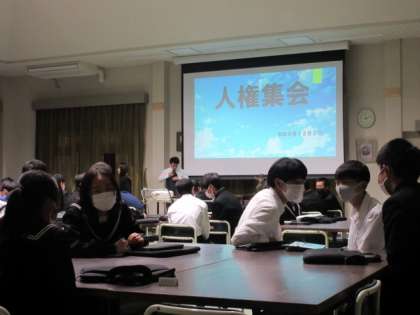 全校が集まって人権について考えました。特に、インターネット上での人権侵害について、動画を見たり、タブレットを使って意見を交換したりしました。