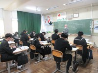 昨日測った「やまびこ」の伝わる時間を使って、反響した山までの距離を計算で求めます。関数の考え方を使って立式していました。